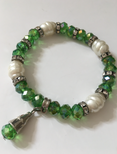 Náramek zelený s perlami