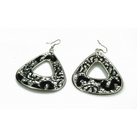 Fashion Jewelry náušnice trojhrany černo-stříbrné 4-b293