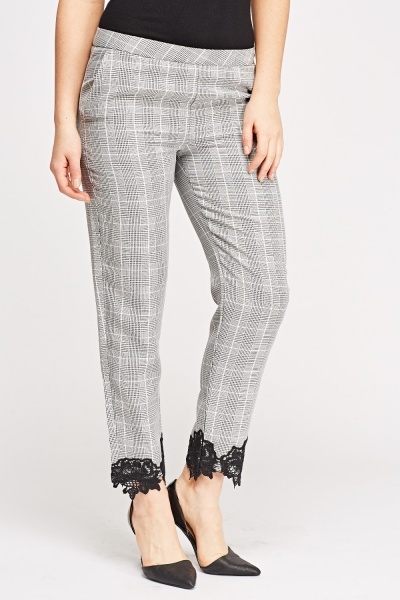 Kalhoty Cameo Rose kostkované s krajkou vel. 40