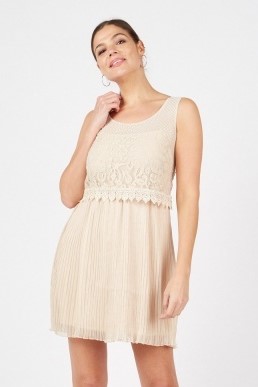 Šaty Lustre béžové plisované s krajkou vel. 38, 40