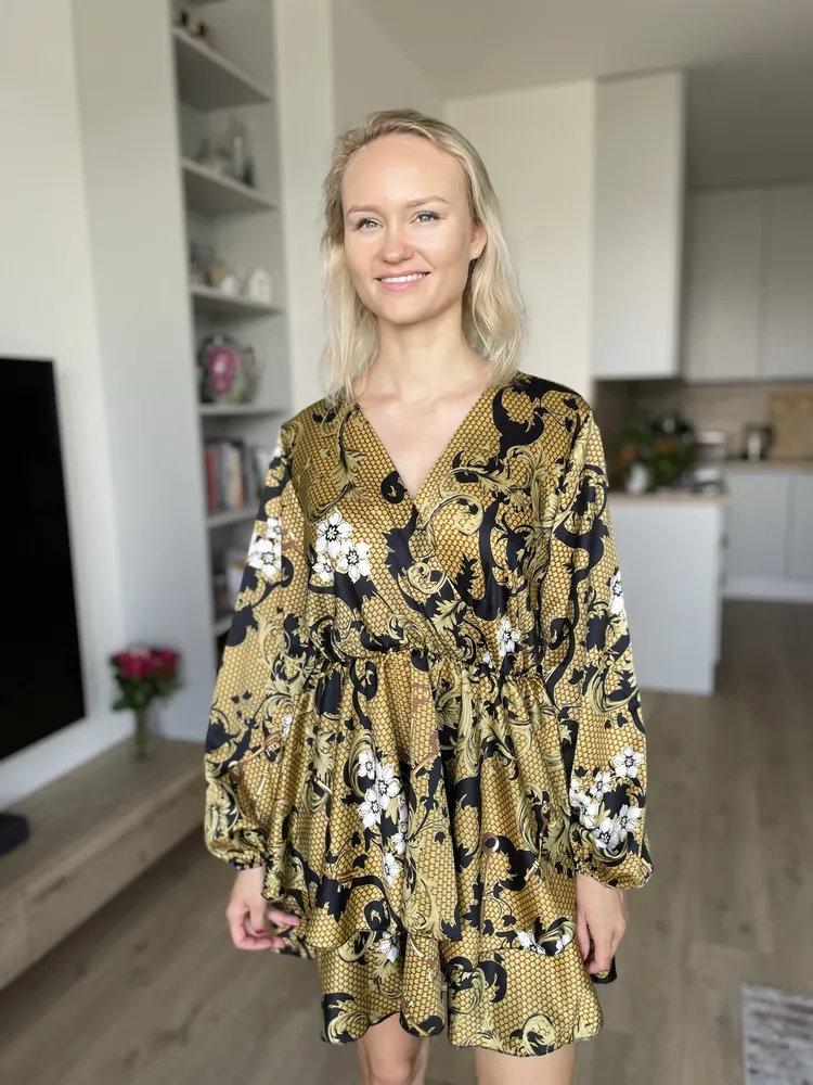 Šaty Zuiki saténové s volánem žluté a černé vel. L